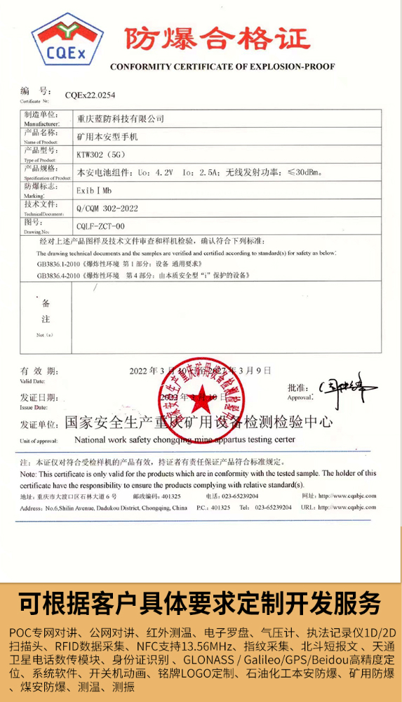 手機(jī)類型: 礦用本安型手機(jī)